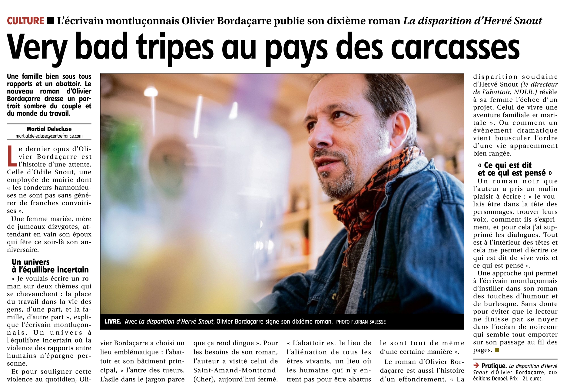 Odile Snout s’affaire autour d’un repas de fête. Mais la personne célébrée, son mari Hervé, directeur de l’abattoir, ne se montre pas au dîner.